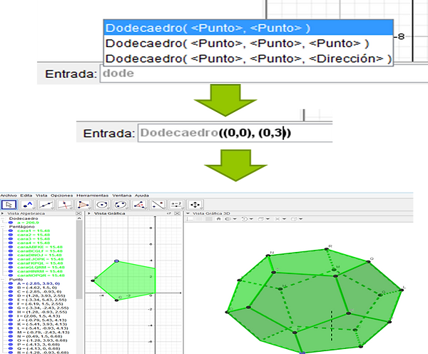 Estando en vista gráfica 3D y recurriendo a la barra de entrada dando el comando acorde con el número de lados deseado poliedro (<punto>,<punto>)