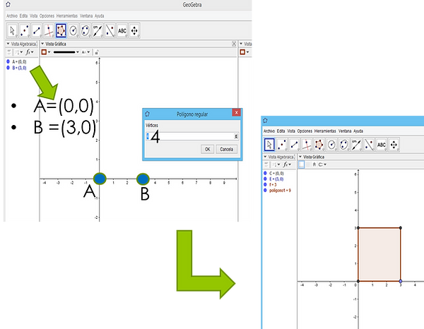 3. Se ubican dos puntos dentro de la gráfica o plano cartesiano y en el recuadro que aparece como “Polígono regular” se indica la cantidad de caras (n) del polígono a graficar y ok