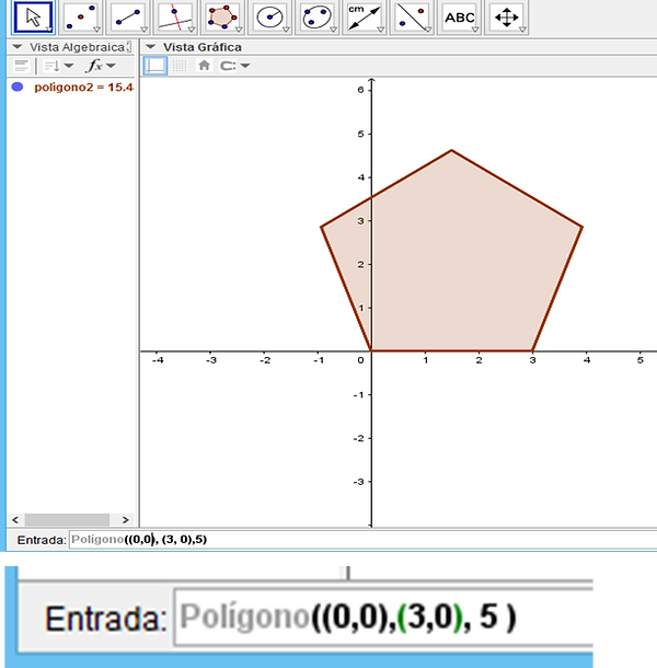 O en la “Barra de entrada”, dando las respectivas coordenadas y el número de lados, proporcionando el comando: