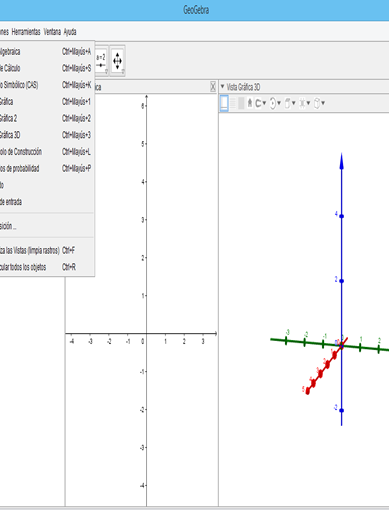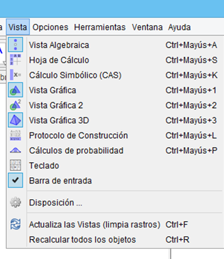 Una de las formas para realizar los diferentes sólidos platónicos, con GeoGebra, se deben de ubicar dos puntos en el plano cartesiano, teniendo activada la “Barra de entrada”, “Vista gráfica” y “Vista gráfica 3D” que se encuentran dentro de la pestaña “Vista”, así: